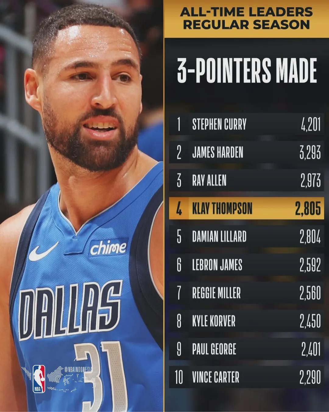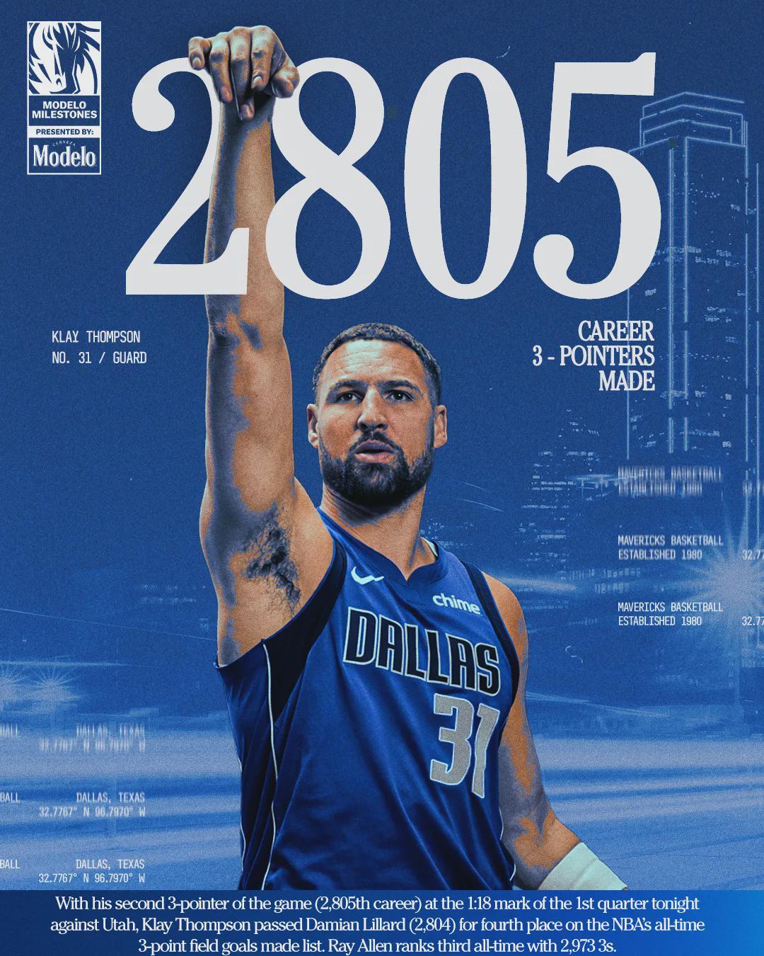 开云-2809记三分!恭喜克莱汤普森!NBA历史三分榜第四位